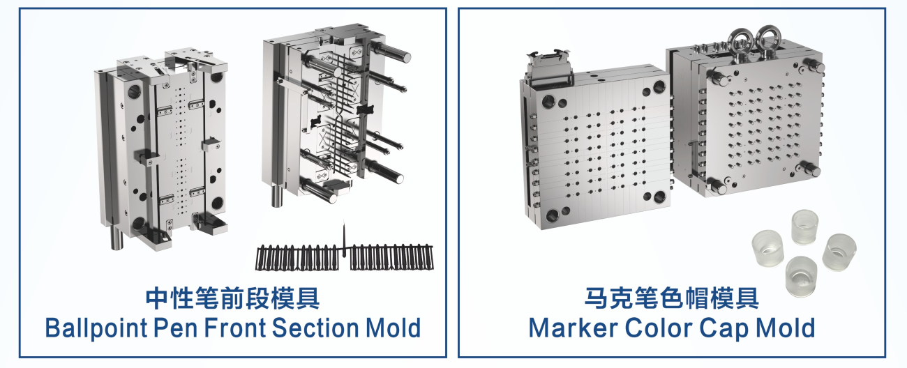 多腔筆模具的靈活性也為其贏得了廣泛的市場應用。它不僅可以用于生產標準規格的筆桿和筆尖,還能通過調整型腔的布局和尺寸,滿足不同型號、不同款式筆產品的小批量定制需求。在滿足大規模生產的同時,也兼顧了個性化定制的市場趨勢。多腔筆模具,憑借其高效、創新、靈活的特點,正在成為筆制造業中不可或缺的重要工具。它不僅幫助企業提高了生產效率、降低了成本,還為行業的技術升級和市場拓展提供了有力支持。