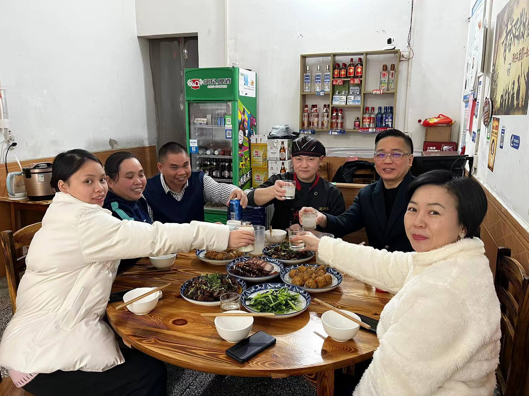 晚上吃飯的時候店里比較忙,然后有幾個吃飯人,桌子做不下了,(家里店面比較小,就是吃飯桌子不多)范生跟蓮姐就主動的把桌子讓給了吃飯的客戶,然后晚上20:00才吃飯,中間也是了解一些我工作中的實況。